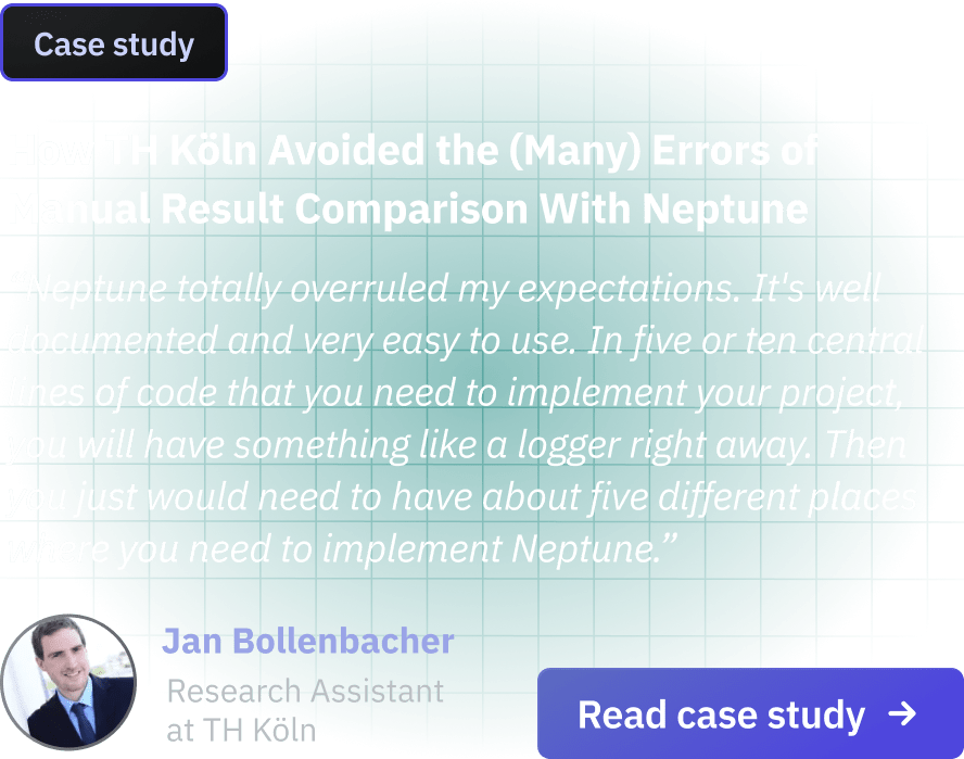 Neptune doesn’t require backend setup or maintenance. So getting started is smooth — even if you’re not a DevOps. You’re good to go with only a few lines of code. It’s a great way to teach and learn best practices for tracking real-life projects.