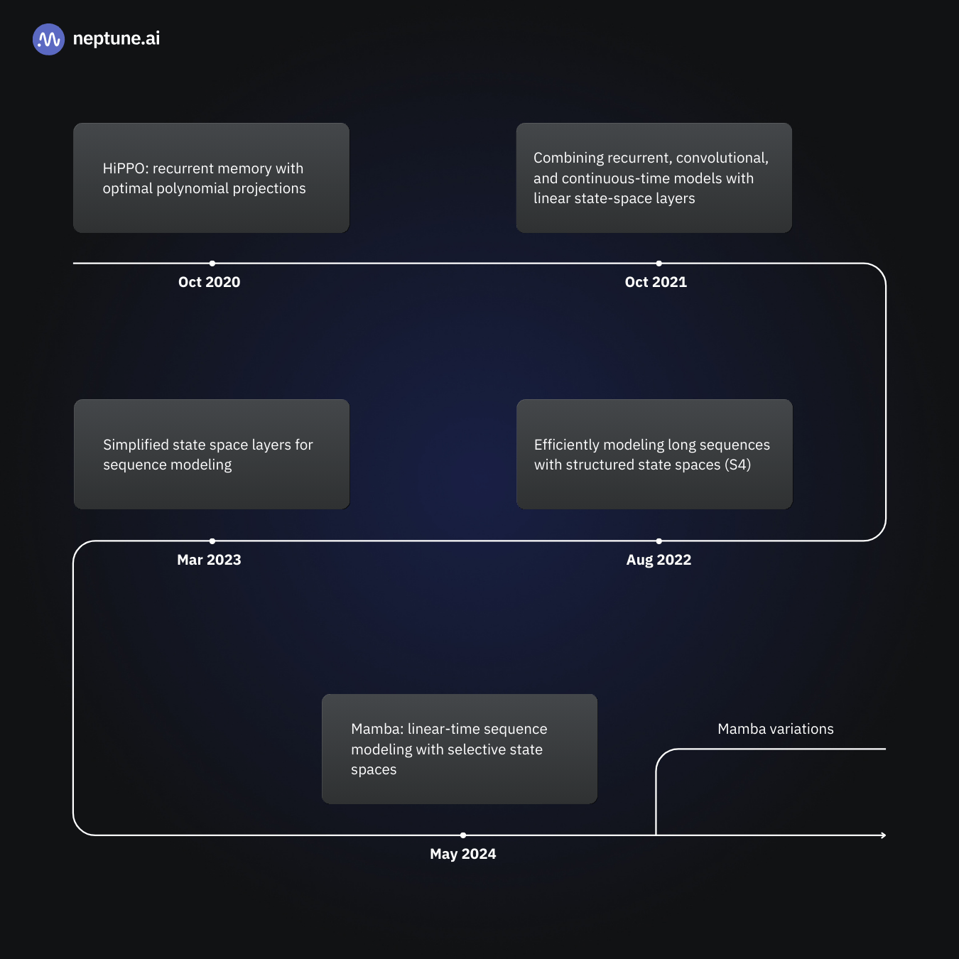 State Space Models (SSMs), long established in time series analysis, have been utilized as trainable sequence models for decades. Around 2020, their ability to efficiently handle long sequences spurred significant progress in adapting them for natural language processing (NLP).