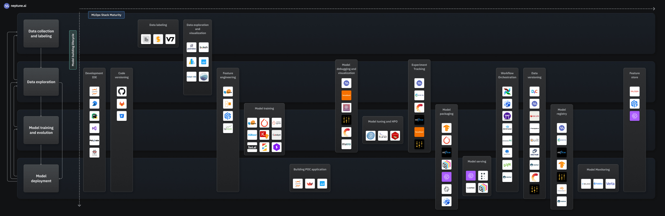 - Productionalization: this is often really subjective in teams because it’s mostly the ML engineers that end up serving models. But the lines between data scientists and ML engineers are blurring with the commoditization of model development processes and workflows with tools like Hugging Face and libraries that make it easy to build models quickly. They are always checking model quality to verify that the way it works in production responds to initial business queries or demands.